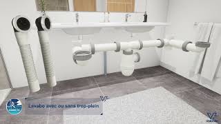 La tubulure de raccordement Connectic pour 2 lavabos de VALENTIN est un système indépendant des bondes car il est particulièrement intéressant à utiliser sous les plans de toilettes en les combinant à des vasques à poser afin de gagner de la place.