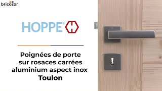 Cet ensemble de poignées de porte sur rosaces carrées TOULON de HOPPE est certifié pour les bâtiments publics, tertiaires et résidentiels à fréquentation élevée. Il est particulièrement robuste.
