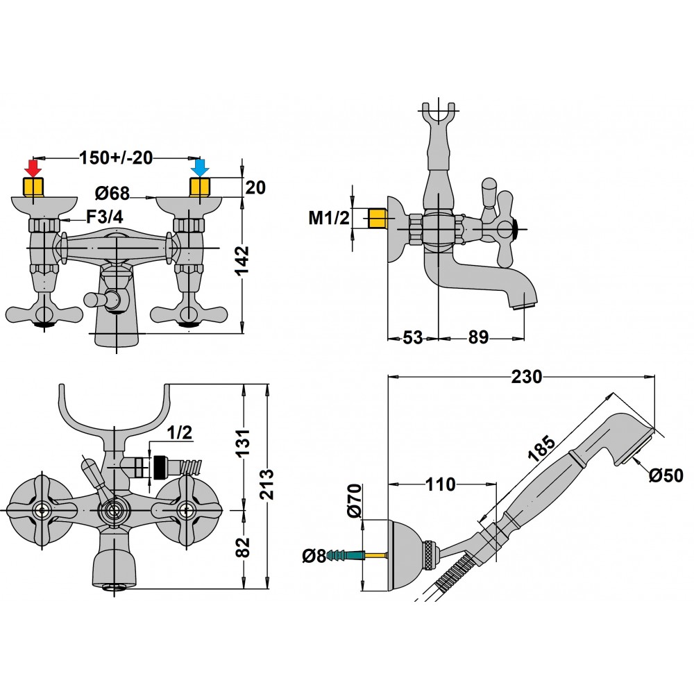 Caractéristiques techniques :- Mélangeur mural à têtes à clapet.