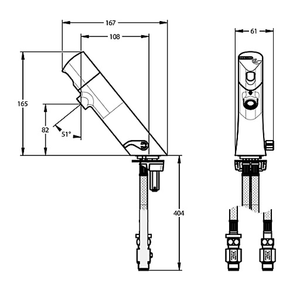 Alimentation hydraulique : Flexibles G 3/8'' (12x17) / Alimentation électrique : Pile lithium 9 volts livrée avec le robinet.