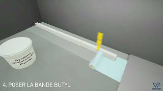 Livré 1 caniveau avec 4 pieds réglables et bande d'étanchéité en Butyl.