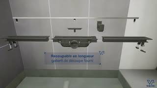 Seule son profilé en aluminium est visible, il est réglable en hauteur pour respecter la hauteur du carrelage existant de 6 à 22 millimètres. Ce profilé est amovible afin de permettre l'accès à la canalisation sans difficulté.