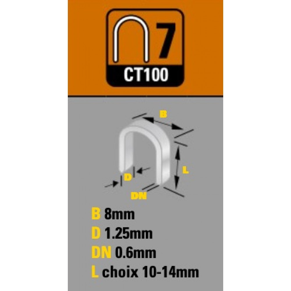 Crampons  : Type 7 :  10mm (1-CT106T) ; 11mm (1-CT107T) ; 12mm (1-CT108T) ; 14mm (1-CT109T) et Type CT 300 : 8mm (1-CT305T) ;  10mm (1-CT306T) ; 12mm (1-CT308T), (Arrow T25)