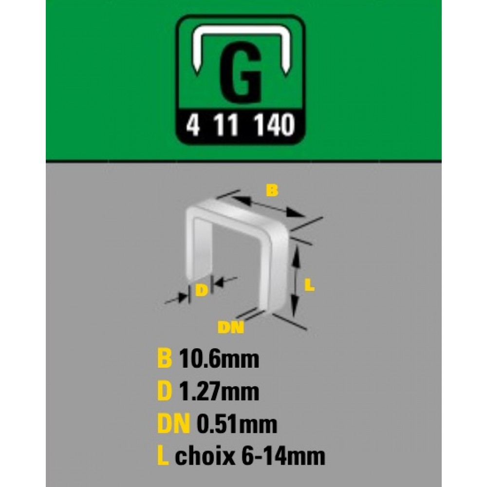 Agrafes : Type G : 6mm (1-TRA704T) ; 8mm (1-TRA705T) ; 10mm (1-TRA706T) ; 12mm (1-TRA708T) ; 4mm 1-TRA709T), (Arrow T50)