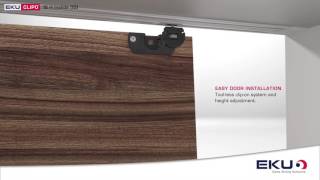 Il est spécialement conçu pour le système de coulissage pour portes de meubles en bois modèle Clipo 16 H ou 16 GPK de EKU. La porte coulisse par le haut tout en étant guidé par un rail en bas.