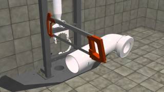 La cuvette se fixe sur le bâti-support par deux tiges filetées sans découpe, après réalisation de l'habillage. Le bâti est maintenu au sol par six chevilles métalliques. Les pieds sont dotés d'une ouverture oblongue permettant un ajustement facile de la position du bâti contre votre cloison.