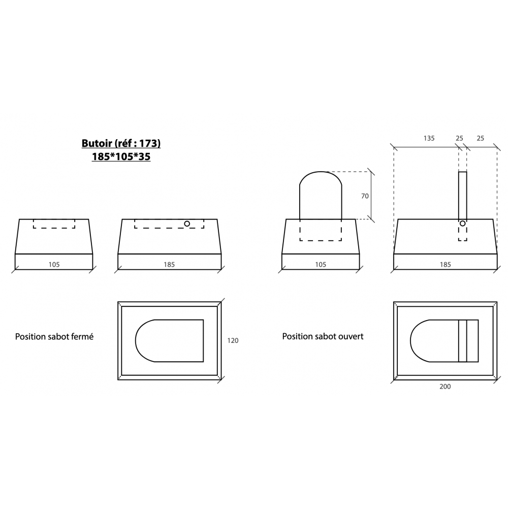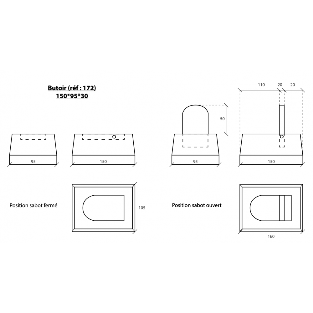 - Modèle large (réf Bricozor 461838) : 185 x 105 x 35 mm