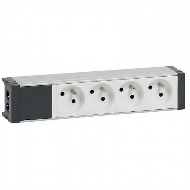 - Equipé de 4 prises 2P+T avec puits inclinés à 35° - 16A - 250V~ équipées d'éclips de protection - Puissance maximum : 3680W en 230V