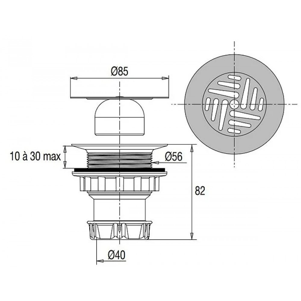 Bonde de douche - pour receveur - diamètre 60 mm VALENTIN