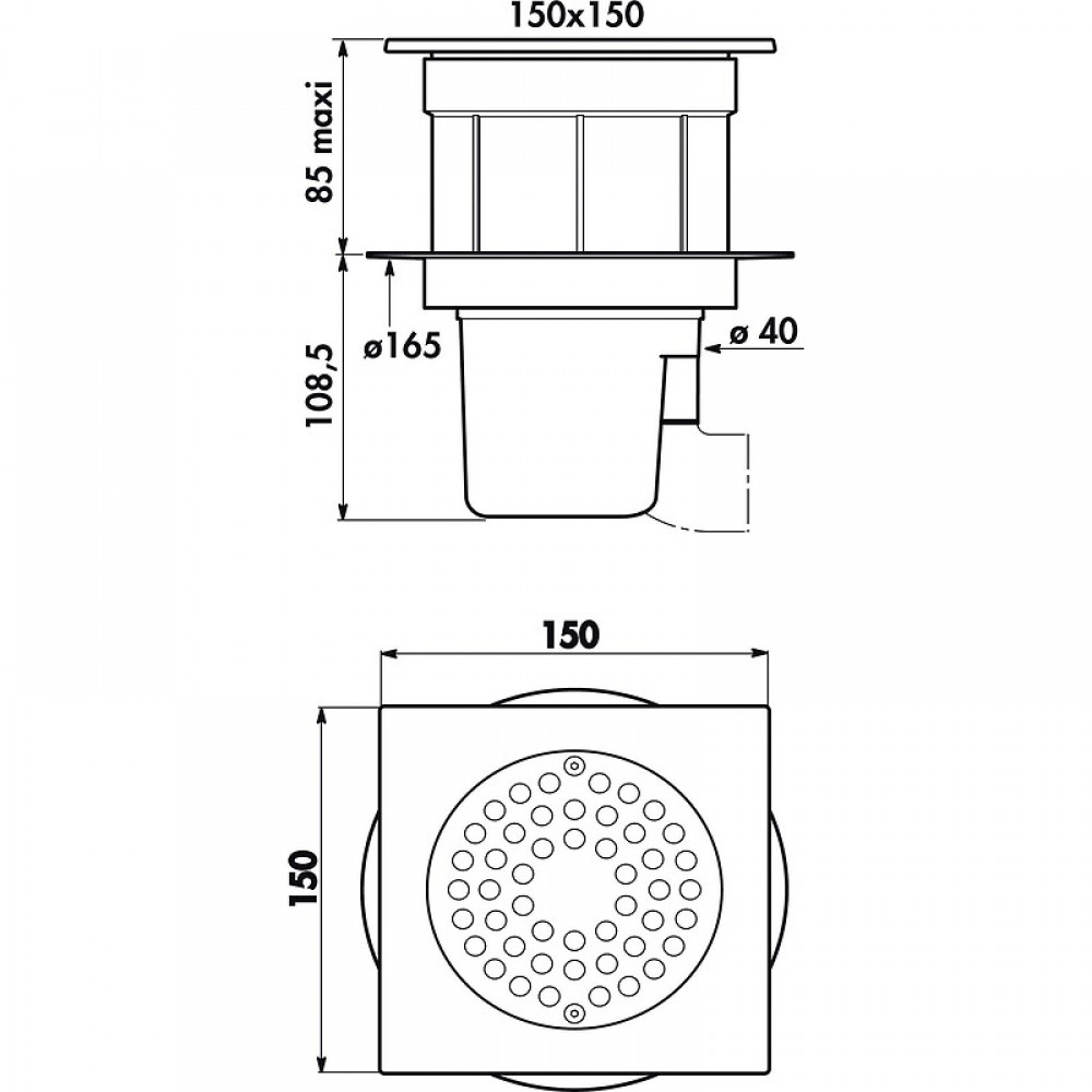 - Modèle en 150 : Platine et grille Inox poli brillant 150 x 150 mm