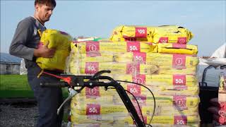 La transmission par vis sans fin dans un bain d'huile et courroie assure une grande fiabilité et une longue durée de vie. La cuve en tôle galvanisée est à la fois robuste et résistante à la corrosion, et offre une capacité de transport de 85 litres. Pour un chargement et un déchargement rapides, la cuve est dotée d'un système de déchargement frontal avec contrôle de sécurité.