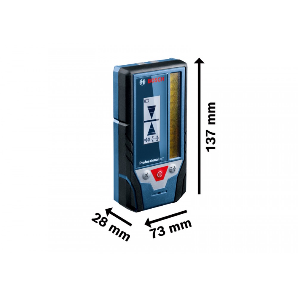 La cellule de réception laser BOSCH LR 7 Professional (référence 0 601 069 J00) est un accessoire indispensable pour étendre la portée de vos lasers lignes et lasers combinés BOSCH jusqu'à 100 mètres. Conçue pour détecter les lignes laser vertes et rouges, cette cellule améliore significativement l'efficacité et la précision de vos travaux de nivellement, même dans des conditions de forte luminosité ou sur de grandes distances.