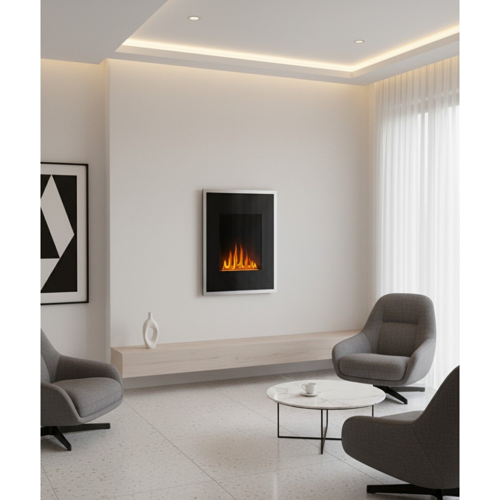 Cette cheminée est dotée d'un effet flamme ultra réaliste (technologie leds Chemin'Arte) qui reproduit l'ambiance d'une véritable cheminée.