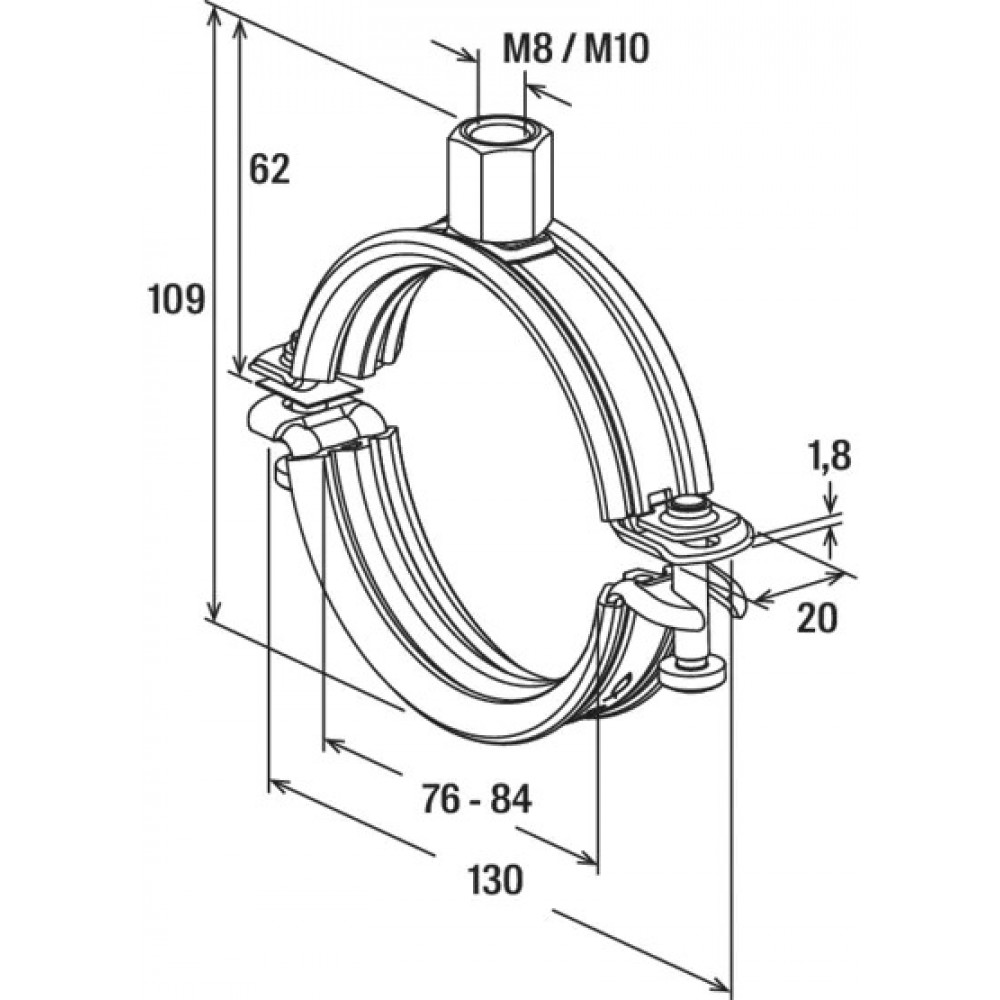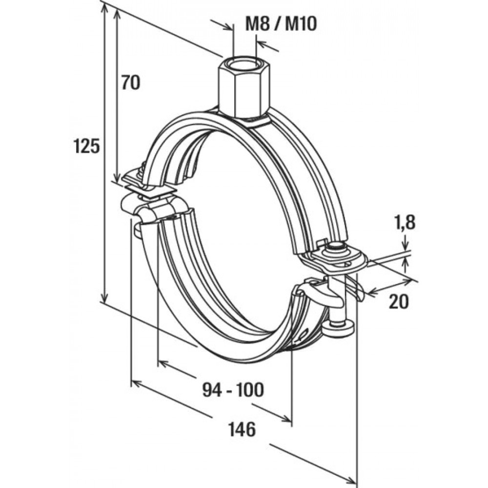 Collier FRS Plus 87-92 pour dimension nominale 3". Le système de fermeture rapide permet un montage simple et rapide des tuyauteries. Les deux vis permettent une adaptation optimale au diamètre des tubes. La fermeture sécurisée et l'ajustement serré de la garniture isophonique garantissent un réglage sûr des tubes. Ecrou de connexion avec filetage M8/M10 pour le raccordement de tiges filetées ou goujons filetés. Vis imperdables.Application