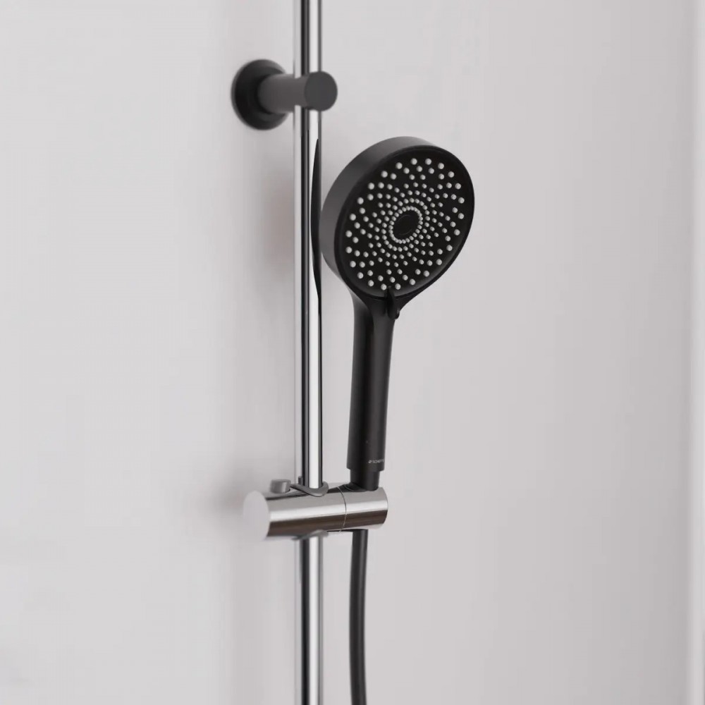 La colonne de douche Matao Rain se distingue par son esthétique contrastée Chrome et Noir Mat et son ergonomie pensée pour la rénovation. Grâce à son système d'inversion par bouton-poussoir et ses supports réglables, elle transforme votre douche quotidienne en un véritable moment de détente "Wellness".