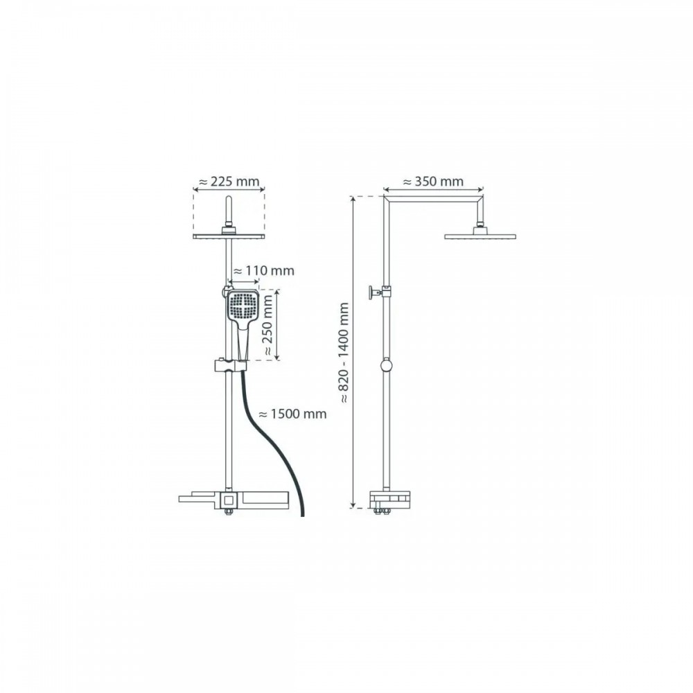 | Dimension de la douche de tête | Ø225 mm |