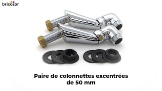 L'excentration est de 50 mm par colonnette. Par exemple, cet ensemble permet le raccordement d'une robinetterie d'entraxe 150 mm sur des arrivées d'eau de 140 mm d'entraxe.