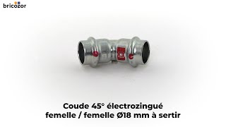 Ce coude à 45° en acier Électrozingué est compatible uniquement avec les réseaux d'eau dans la même matière. Il s'agit d'un raccords à sertir à débit optimisé en acier non allié 1.0308. Il est Galvanisé à l'extérieur (chromatage bleu). Ce raccord à sertir équipé d'un guide-tube cylindrique pour protéger le joint. Convient pour des installations apparentes, encastrées et des colonnes montantes. Tube en acier non allié 1.0308 (E235) Galvanisé à l'extérieur (chromatage bleu). Convient aux installations de chauffage, solaires et de refroidissement.
