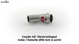 Ce coude à 45° en acier Électrozingué est compatible uniquement avec les réseaux d'eau dans la même matière. Il s'agit d'un raccords à sertir à débit optimisé en acier non allié 1.0308. Il est Galvanisé à l'extérieur (chromatage bleu). Ce raccord à sertir équipé d'un guide-tube cylindrique pour protéger le joint. Convient pour des installations apparentes, encastrées et des colonnes montantes. Tube en acier non allié 1.0308 (E235) Galvanisé à l'extérieur (chromatage bleu). Convient aux installations de chauffage, solaires et de refroidissement.