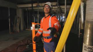 Décoffreur longue portée Nanovib pour démonter les coffrages lors du décoffrage des dalles en béton.