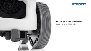 Livré 1 nettoyeur haute pression KRANZLE avec tambour-enrouleur, 15 mètres de tuyau haute pression, 1 buse Turbo-Jet, 1 lance de projection avec protecteur-buse, 1 buse haute pression Jet plat 25°, 1 pistolet PICO. 1 manivelle rabattable pour enrouleur m