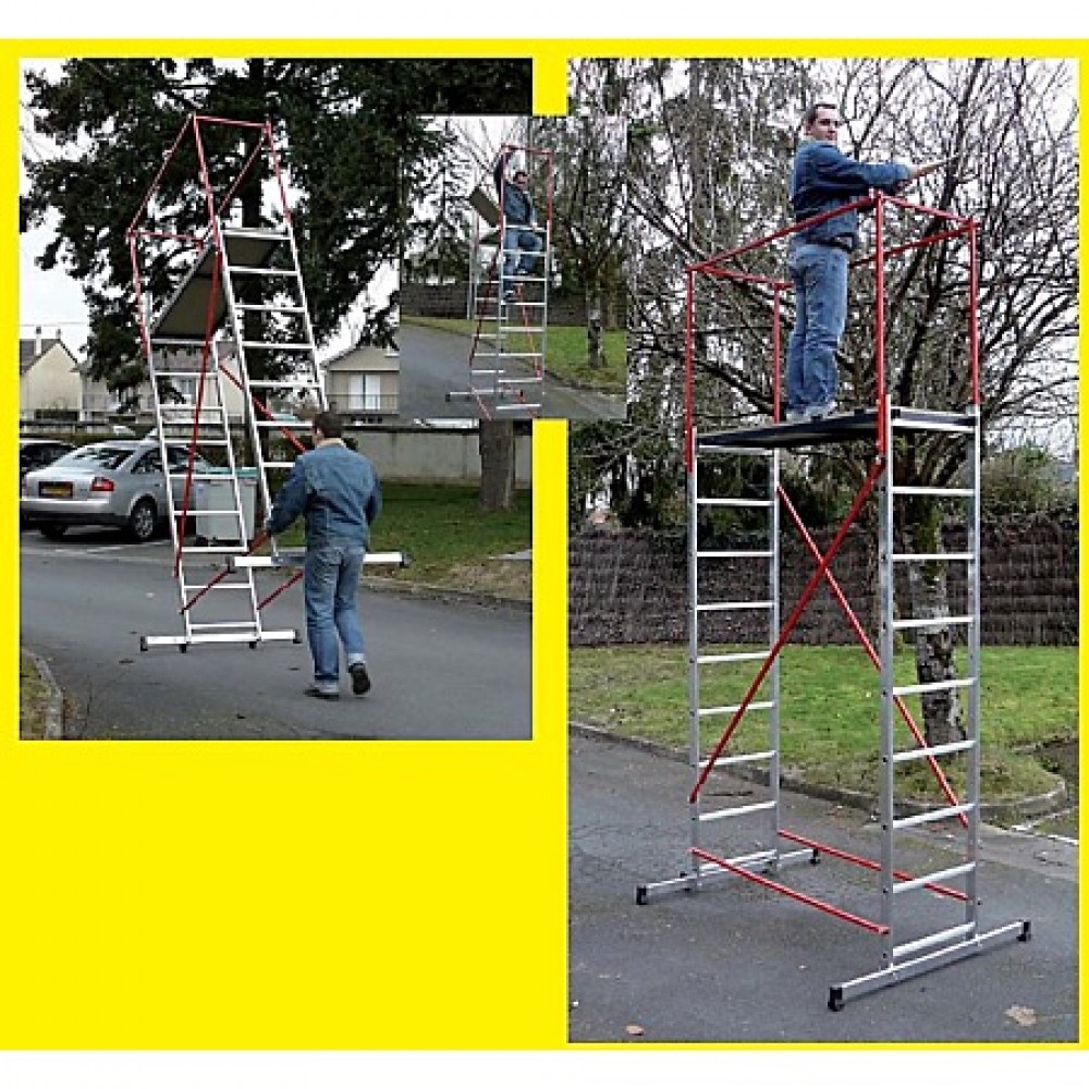 livré dans les delais , montage facile , mais quand on travaille on ne sent pas en securité , l'echaffaudage oscille tout le temps. prix raisonnable. convient a mon utilisation mais je ne recommanderai pas ce produit.