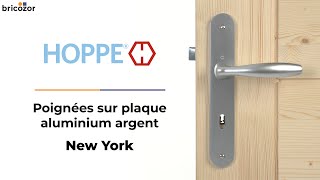 Poignées de porte sur grandes plaques -EA 70 -argent anodisé -New York HOPPE