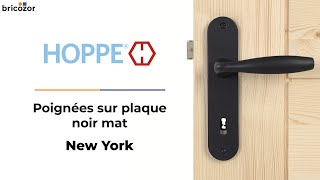 Poignées de porte sur plaques - entraxe 165 mm - alu - noir mat - New York HOPPE