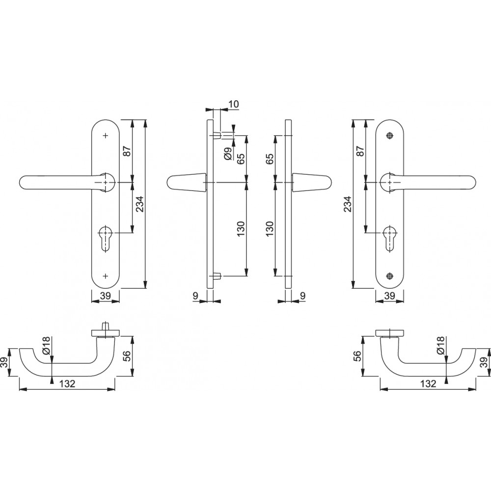 - Liaison : carré à montage rapide HOPPE (parties mâle/femelle)
