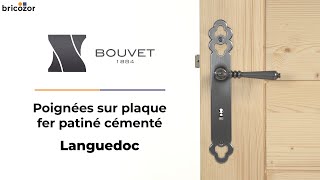 Poignées de porte sur plaques - fer patiné cémenté - Languedoc BOUVET