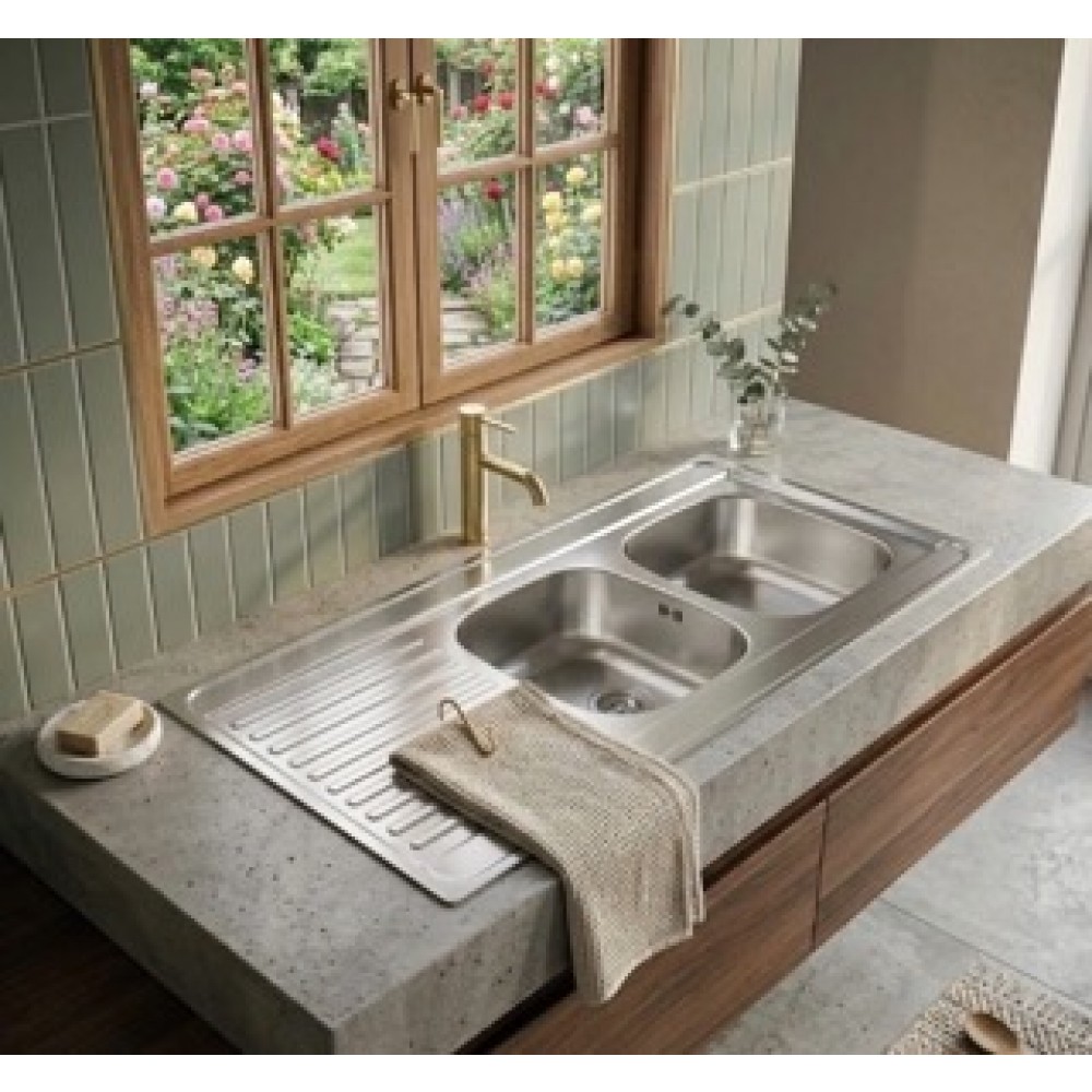 Évier à poser - inox 120 x 60 cm - 2 cuves + 1 égouttoir FRANKE