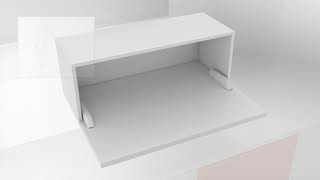 En position totalement ouverte, la porte et la base du meuble sont parfaitement alignées et créent un plan régulier et uniforme.