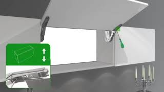 Cette ferrure de relevage Free Flap Mini est conçue pour meuble avec façade large et lourde.