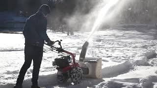 Le fonctionnement fluide de cette fraise à neige double étage assure un enlèvement efficace de la neige tout en évitant le colmatage et en garantissant une projection maîtrisée grâce à son déflecteur 90° intégré.
