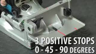 Cette lamelleuse est équipée d'une semelle inclinable de 0° à 90°, dotée d'un levier de verrouillage et d'arrêts rapides à 0°, 45° et 90°, permettant des ajustements rapides et précis. Elle dispose également de six positions de réglage de la profondeur, adaptées à la taille de la lamelle utilisée, garantissant des assemblages parfaitement ajustés.