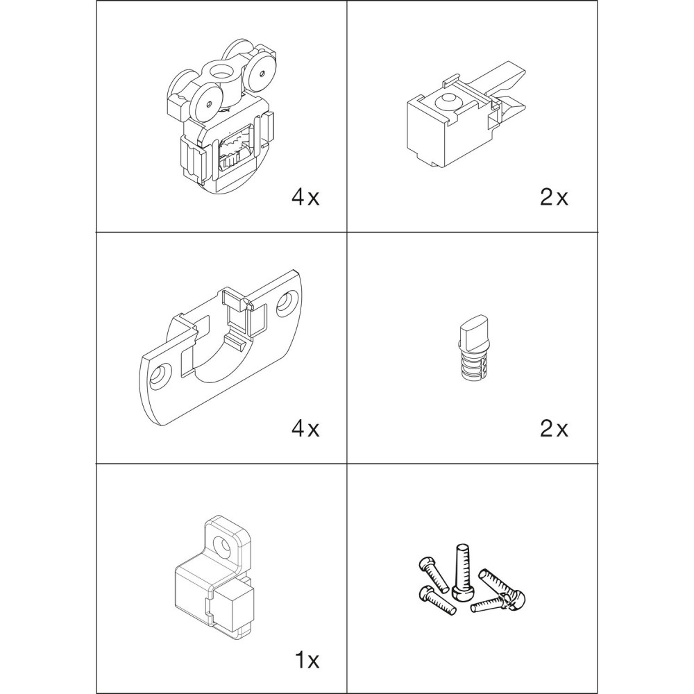 Garniture de vantaux pour porte coulissante EKU spécialement étudiée pour le système de coulissage pour portes de meubles en bois modèle Clipo 16 H IS / MS de EKU.