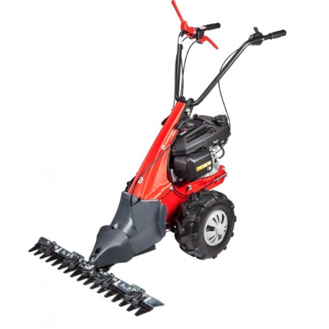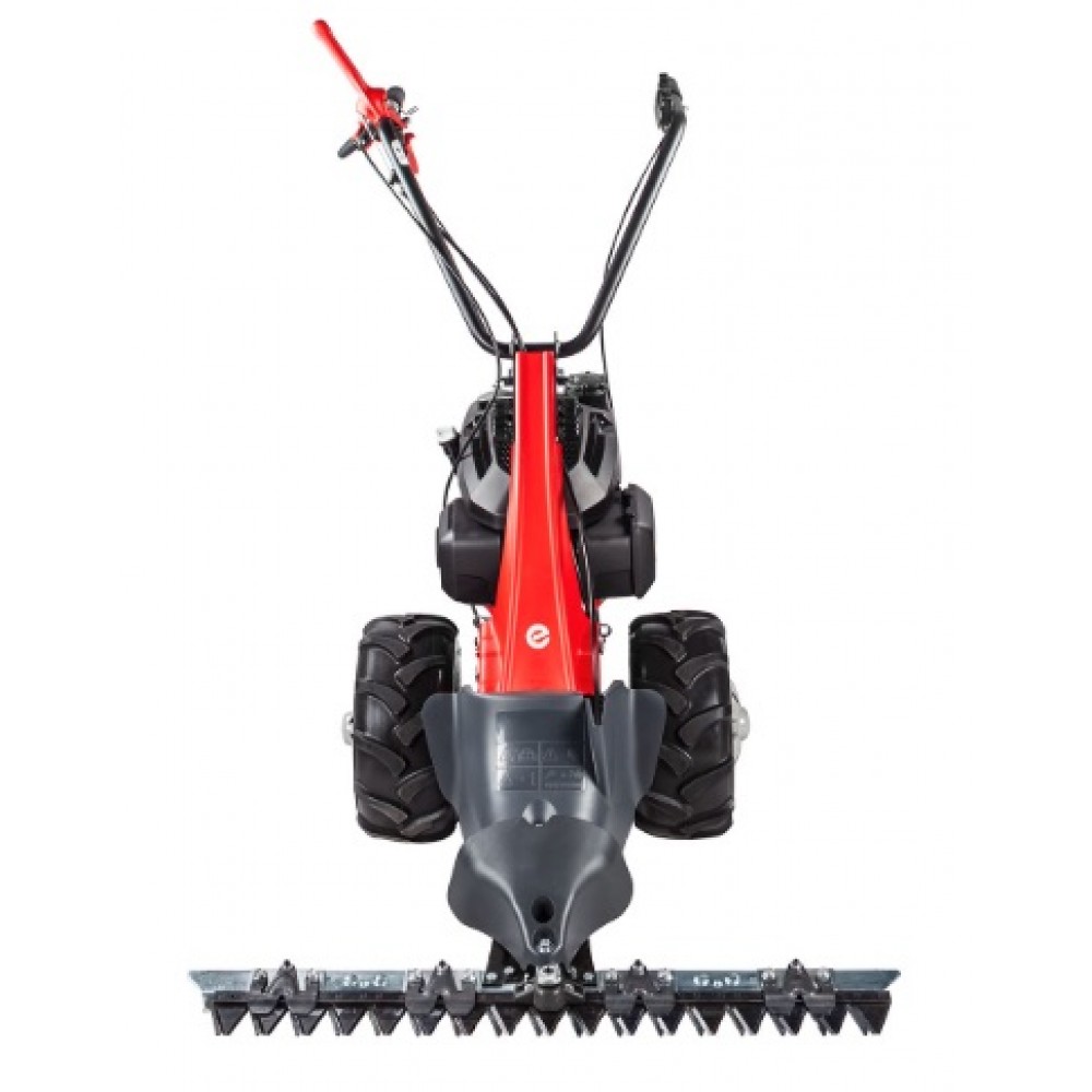 Cette motofaucheuse vous permet de travailler sur une largeur de 87 cm et fonctionne par double mouvement pour un travail de coupe efficace. La barre de coupe est de type basculante. Elle est composée d'une lame inférieure et une supérieure qui se déplace avec un mouvement oscillatoire en contact avec la partie inférieure qui est fixe et sert de contre-lame. Ce type de barre de coupe est appelée mulching pour sa capacité spécifique qui vous permet de procéder à un fauchage net des herbes de toutes tailles et consistantes grâce au profil des lames qui la composent.