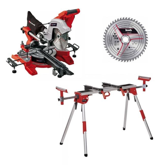Pack scie onglet radiale TE-SM 10 L Dual + piètement + lame de scie 254 mm - 48 dents EINHELL