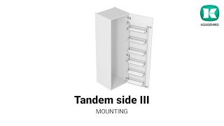 Le système Tandem II est une alternative de choix aux colonnes extractibles classiques car il permet de répartir le poids : les produits lourds (conserves, lait) sur le cadre coulissant intérieur et les produits légers (épices, condiments) sur la porte. Lors du montage, sachez que le cadre coulissant se monte sur la joue intérieure du meuble, ce qui laisse une grande liberté pour choisir le sens d'ouverture de votre porte.