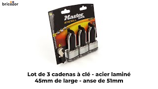 Lot de 3 cadenas à clé - acier laminé - 45 mm de large - anse de 51 mm MASTER LOCK