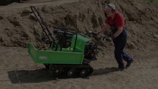 Ce mini dumper, tout terrain est idéal pour transporter des marchandises en vrac dans des terrains difficiles d'accès.