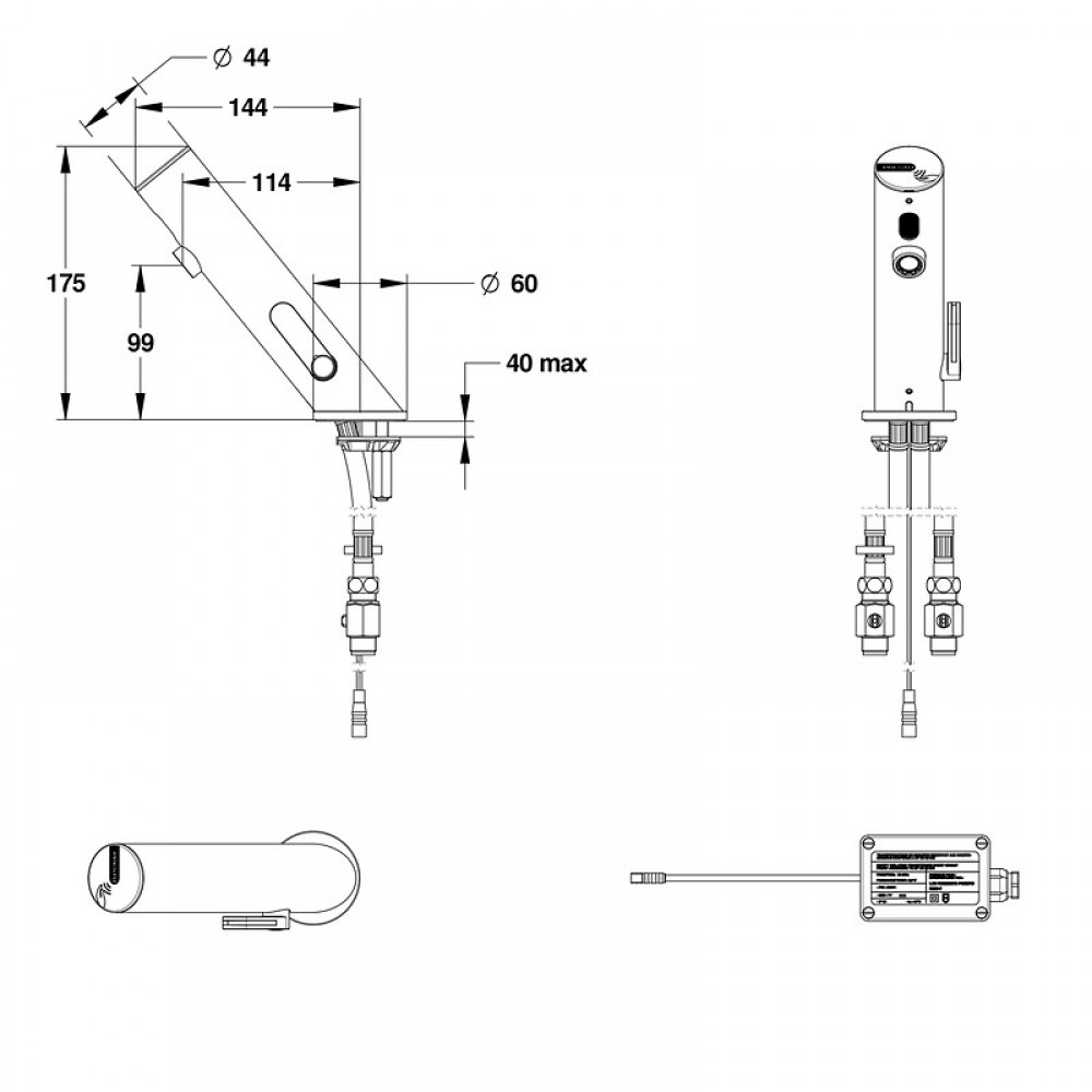 Mitigeur lavabo électronique sur plage - avec robinet d'arrêt - Linea PRESTO
