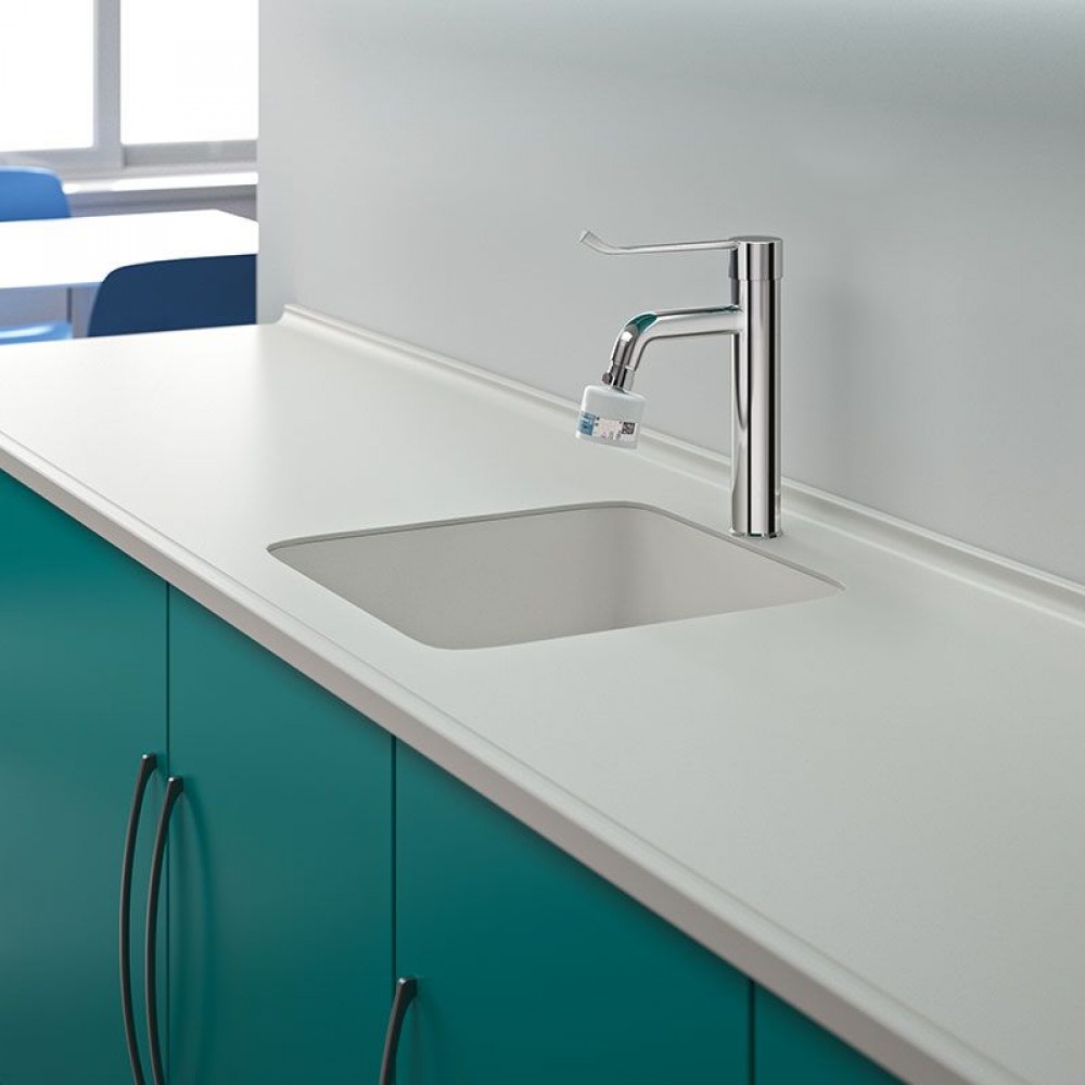 La technologie BIOSAFE garantit qu'aucune zone de stagnation ne favorise la prolifération de bactéries (type Légionelle ou Pseudomonas). La sortie hygiénique est prête à recevoir les systèmes de filtration terminale pour une eau stérile au point de puisage.