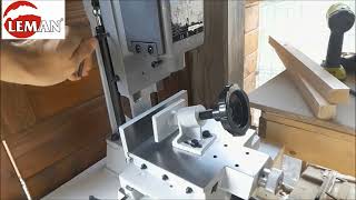 Elle dispose d’une molette de réglage pour le chariotage longitudinal sur queue d’aronde. Elle est dotée d’une butée de chariotage latéral et d’une butée de profondeur de mortaisage réglable. La base de cette mortaiseuse à bédane Leman est percée afin d’être fixée sur un établi.