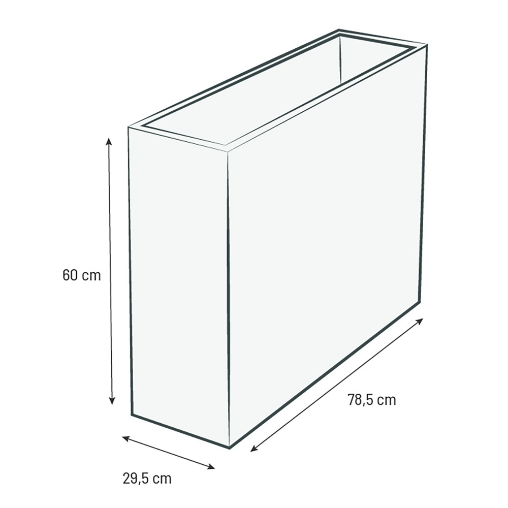 D'une longueur de 78,5 cm pour une hauteur imposante de 60 cm, ce muret permet de donner de la verticalité à vos compositions florales. Ses dimensions intérieures de 60 x 16 x 40,5 cm sont optimisées pour accueillir une grande variété de plantes, des graminées décoratives aux fleurs de saison.