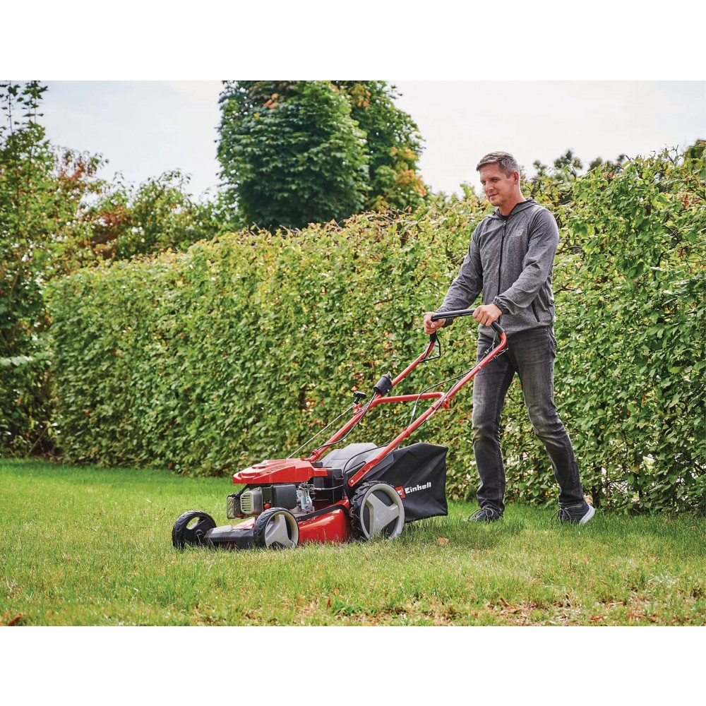 La tondeuse à gazon thermique GC-PM 46 S HW-E d’Einhell est conçue pour offrir un confort optimal pendant la tonte. Grâce à son design de type « buggy » avec roues motrices, cette tondeuse ménage à la fois le gazon et l’utilisateur. Contrairement à de nombreuses tondeuses thermiques, souvent difficiles à manœuvrer, ce modèle se distingue par sa facilité d'utilisation.