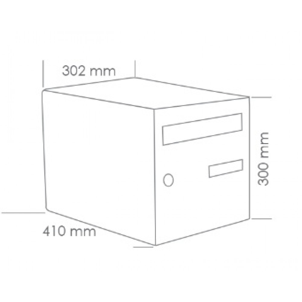 Ses dimensions généreuses (L 302 x H 300 x P 410 mm) permettent d'avoir un espace de stockage maximal pour votre courrier.