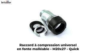 Le corps du raccord et l'écrou sont en fonte malléable, le joint d'étanchéité en NBR et l'anneau de prise en charge est en acier galvanisé.