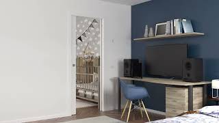 Grâce à sa fonction coulissante à galandage, cette porte disparaît dans la cloison, permettant un gain de place dans votre intérieur.
