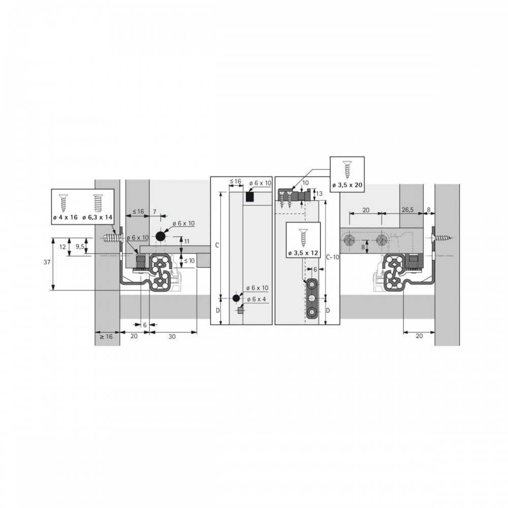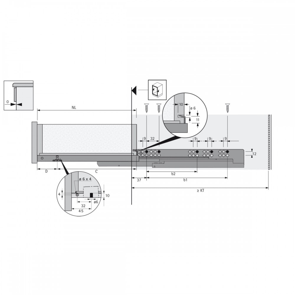 - Épaisseur du tiroir : convient aux tiroirs avec une épaisseur de côté de tiroir jusqu'à 16 mm.
